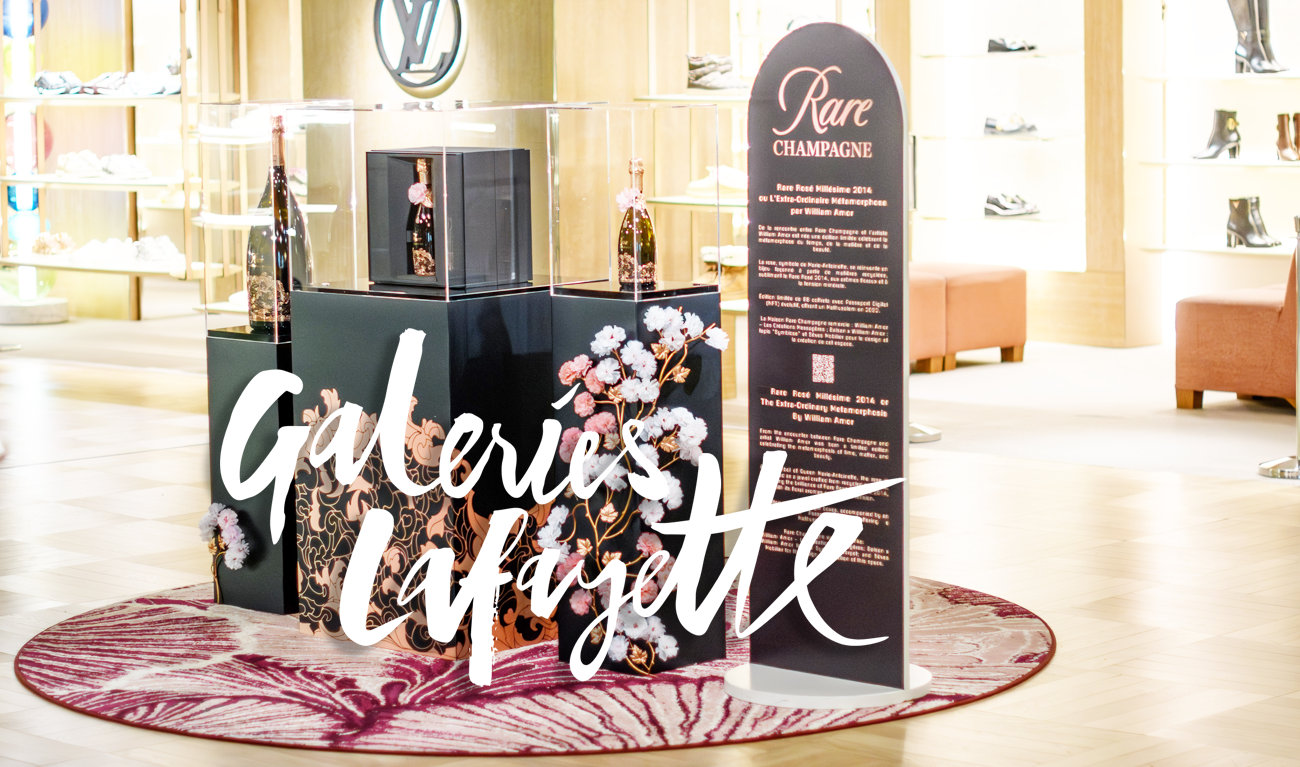 "J’ai imaginé et créé un POP UP STORE pour cette nouvelle collaboration RareChampagne, actuellement visible aux Galeries Lafayette" du 12 novembre - jusqu’au 7 janvier 2026