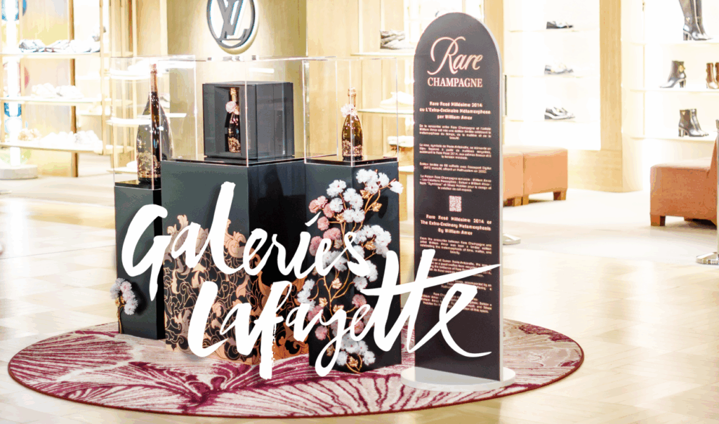 Chaque flacon de Rare Rosé Millésime 2014 est ainsi sublimé par une « Création Messagère », conçue par l’artiste plasticien William Amor. Ce dernier a créé une « Rosa Péonie » en hommage à la Reine Marie Antoinette, muse de la Maison Rare Champagne. (…)